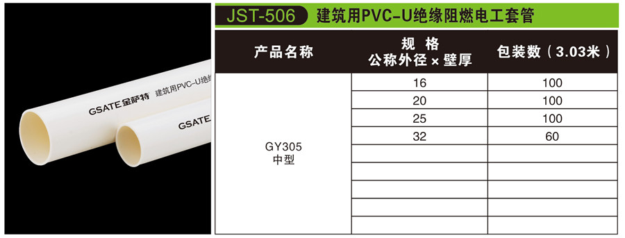 JST-507 建筑用PVC-U絕緣阻燃電工套管